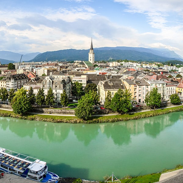 Villach hat fast 65.000 Einwohner, ist die siebtgrößte Stadt Österreichs und liegt im Bundesland Kärnten. Das Marktrecht erhielt Villach im Jahr 1060 und wurde 1240 urkundlich als Stadt erwähnt. Nach 1526 war Villach das Zentrum des Protestantismus in Kärnten. Zu den bekannten Sehenswürdigkeiten in Villach zählen beispielsweise der Hauptplatz, das Relief von Kärnten, der Stadtpfarrturm, die alte Stadtmauer und die Heiligenkreuzkirche.